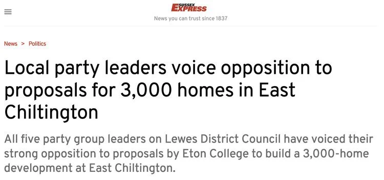 Sussex Express - July 7, 2021 7 Jul Written By Jessica Duggan Local party leaders voice opposition to proposals for 3,000 homes in East Chiltingtonhttps://www.sussexexpress.co.uk/news/politics/local-party-leaders-voice-opposition-to-proposals-for-3000-homes-in-east-chiltington-3299450 Jessica Duggan